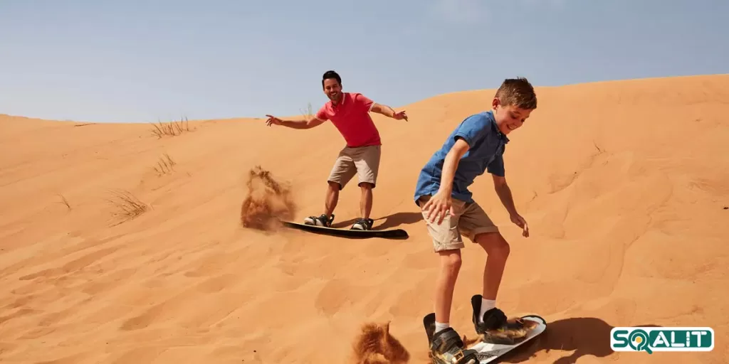 در سندبورد مانند اسنوبرد پاهای خود را به صفحه آن بچسبانید و از تپههای شنی مانند شیبهای اسکی پایین بیایید. تعدادی از شرکتها – مانند Desert Safari Dubai – وجود دارند که تجربه کامل سوار شدن به سندبورد را همراه با نکات و ترفندهایی برای سر خوردن در میان تپهها به شما ارائه میدهند.