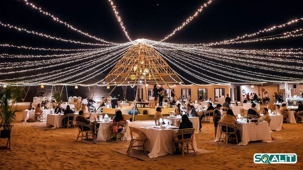 در رستوران بینظیر بیابانی، سونارا کمپ، غذا بخورید، اینجا دارای یک منوی ناهار خوری عالی، همراه با سرگرمیهای زنده و نورپردازی شیک است. منوی انتخاب شده سرآشپز فرانسوی آن، فرانک سانا، هر غذا را با ترکیبات منطقهای و غربی لذت بخش میکند. پرفروشترینهای غذاخوری سونارا کمپ عبارتند از تاکوی گوشت گاو، شاورما مرغ، اسادور بره فیوژن، ریزوتو قارچ و ترافل سیاه، و پای دلچسب دولچه. آشپزخانه در فضای باز آن نیز گزینههای ویژهای برای وگانها، گیاهخواران و بچهها ارائه میدهد.