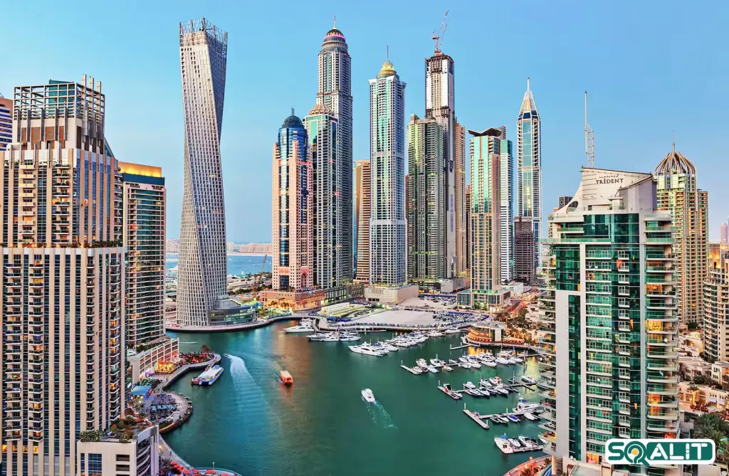 دبی مارینا یک شهر کانالی ساخته دست بشر است که در سال 2003 ایجاد شد و مناظر خیره کننده و چشمگیر همراه با مسیرهای پیاده روی و سواحل فراوان را ارائه میدهد. مغازهها و رستورانهای زیادی در امتداد مارینا موجود است که برخی از آنها برای مسافرانی که بودجه اندکی دارند، مناسب هستند.