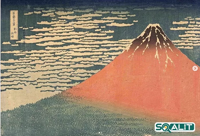 این اثر نقاشی از کوه فوجی که توسط هوکوسای Katsushika Hokusai نقاشی شده است، با نام باد جنوبی، آسمان صاف، تقریباً 36 منظره از کوه را نشان میدهد.