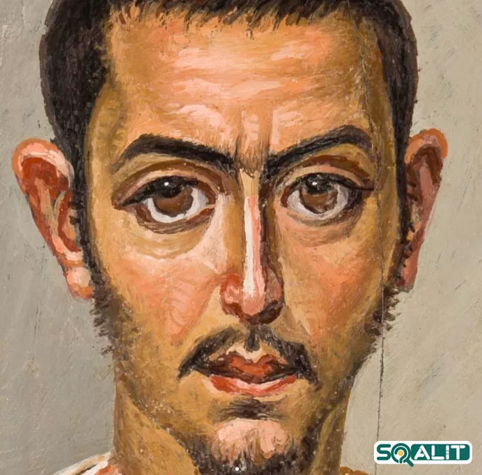 تابلویی که هم مصری و هم رومی است. این قطعه که «پرتره تشییع جنازه مردی با فنجان» نامیده میشود، در حدود سالهای ۲۲۵ تا ۵۰ پس از میلاد روی چوب کشیده شده است. نسخه اصلی آن از آنتینوپولیس مصر است، در زمانی که مصر تحت نفوذ روم بود.